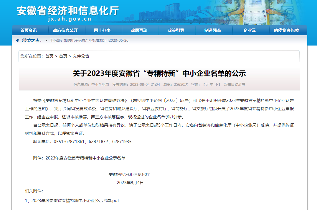 喜報!環(huán)通公司成功上榜2023年度安徽省 “專精特新”中小企業(yè)名單