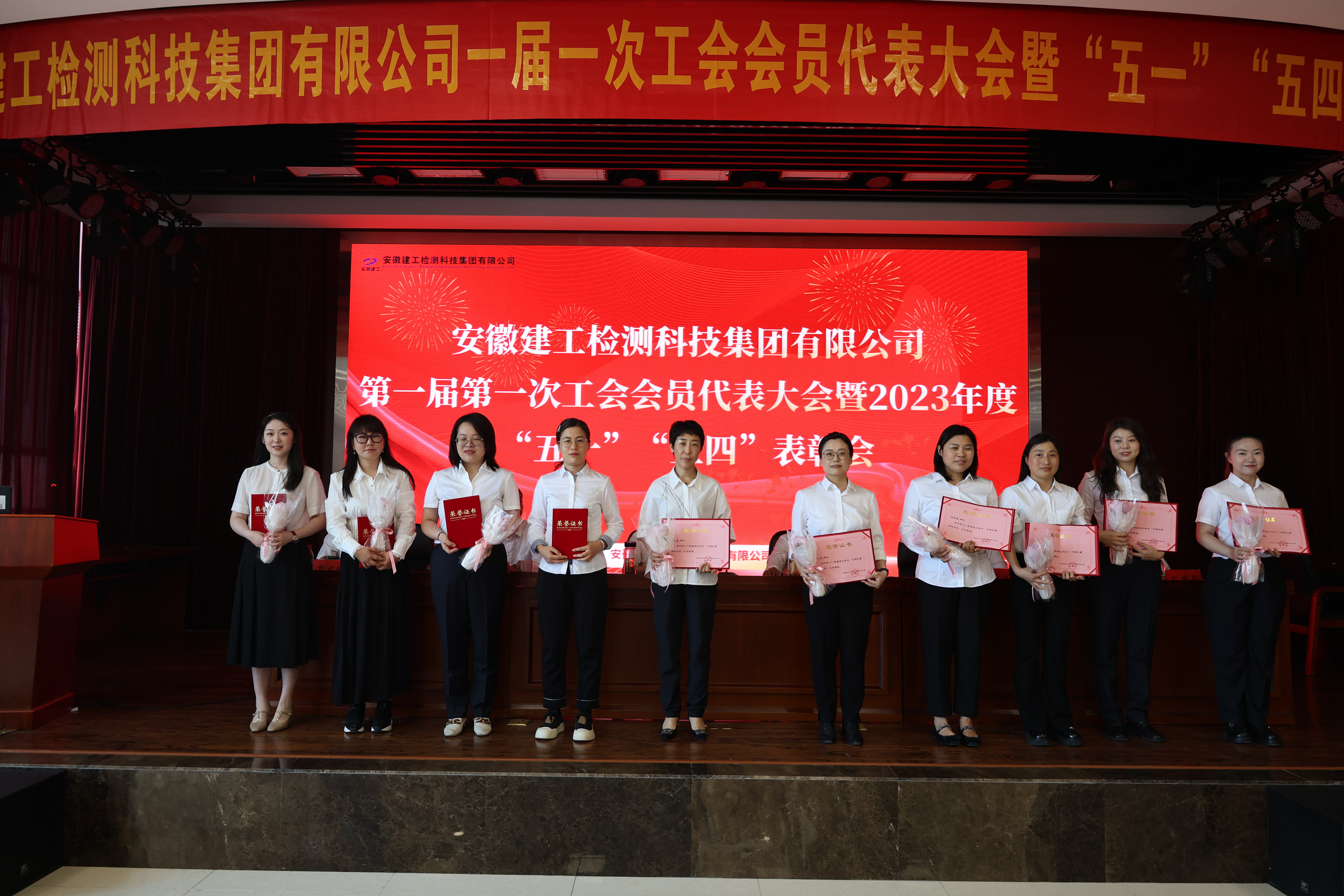 會上,對建工檢測2023年度巾幗之星、五四紅旗團組織、優(yōu)秀共青團干部及優(yōu)秀共青團員進行了表彰。