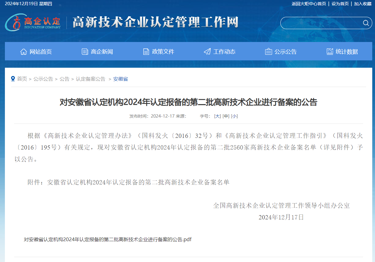 近日,全國高新技術企業(yè)認定管理工作領導小組辦公室發(fā)布《對安徽省認定機構2024年認定報備的第二批高新技術企業(yè)進行備案的公告》,建昌檢測順利通過2024年“高新技術企業(yè)”認定,成為建工檢測本部及所屬單位在內(nèi)的第6家高新技術企業(yè)。
