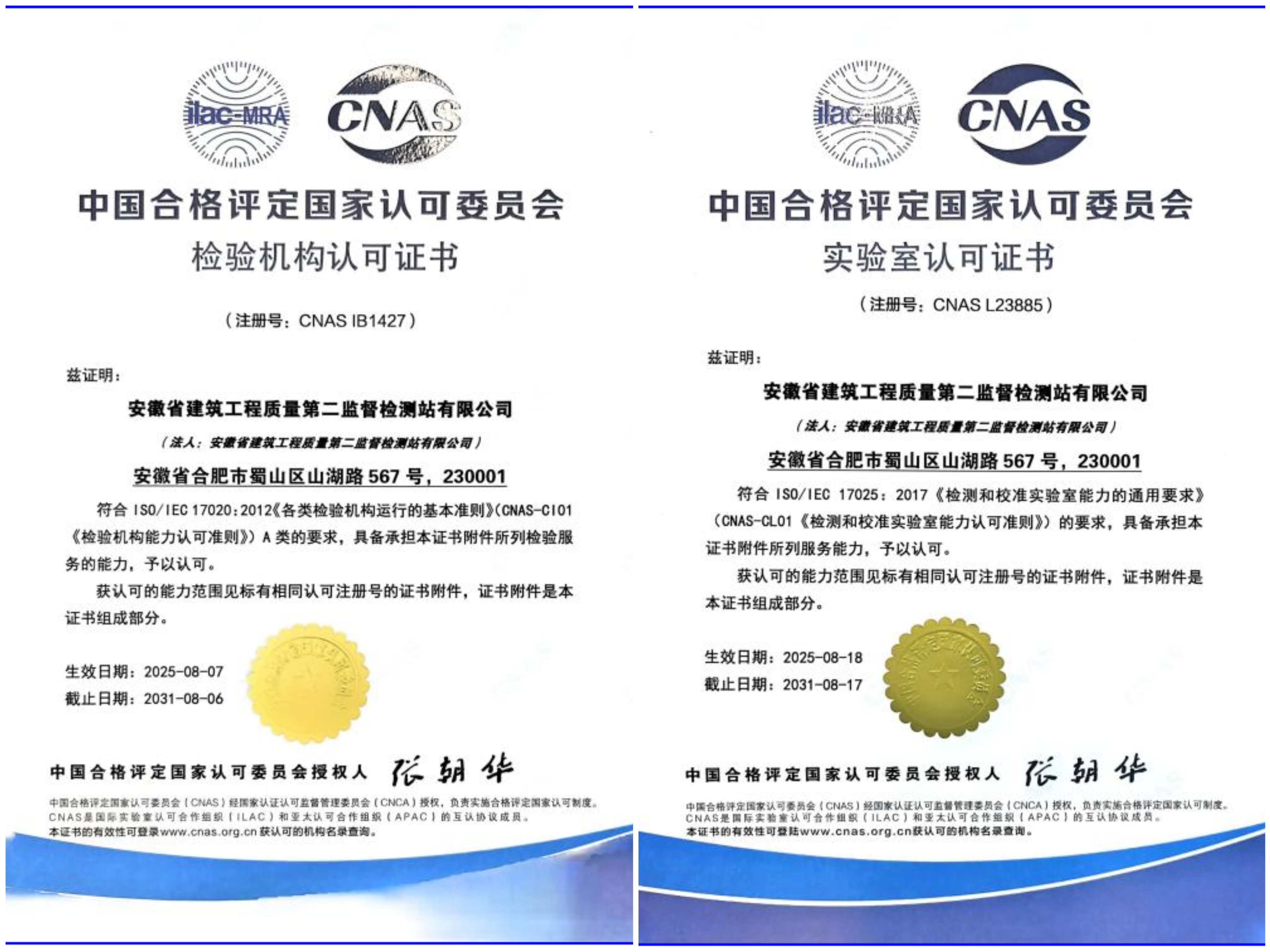 喜報(bào)!安徽省建筑工程質(zhì)量第二監(jiān)督檢測(cè)站有限公司獲得CNAS檢驗(yàn)機(jī)構(gòu)認(rèn)可