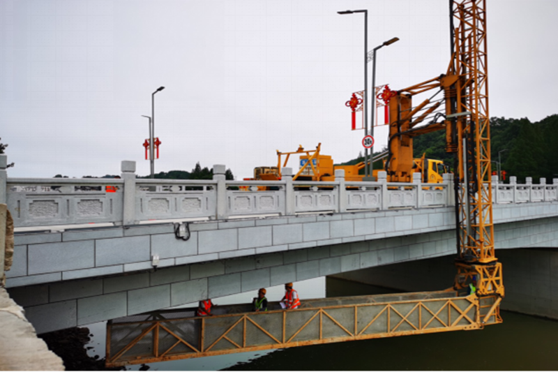 7月7日,全國重點文物保護單位—黃山鎮(zhèn)海橋受洪水持續(xù)沖刷及長時間高水位浸泡慘遭水毀,讓人扼腕嘆息。7月16日,為了解鎮(zhèn)海橋上游兩座橋梁黎陽橋、桃花島大橋結(jié)構(gòu)安全狀況,確保黃山市民出行安全,道橋所受黃山市市政工程管理處委托對上述兩座橋梁進行檢測。接到委托后,道橋所檢測人員第一時間冒雨趕赴現(xiàn)場勘察,發(fā)現(xiàn)人行道寬度達到3米,常規(guī)橋檢車無法使用,同時上、下游橋梁或損毀、或維修暫停使用,導致待檢測橋梁交通流量大,不利于現(xiàn)場檢測工作實施。針對發(fā)現(xiàn)的問題,道橋所現(xiàn)場檢測人員及時調(diào)整檢測方案,連夜從外省調(diào)配適用的橋檢車,并積極與交警部門聯(lián)動,合理組織、管制交通。為盡量減小檢測工作對市民出行的影響,現(xiàn)場人員將檢測時間定在凌晨四點。通過仔細全面的檢測、排查,給橋梁做了一次全身體檢,為市民安全出行保駕護航。