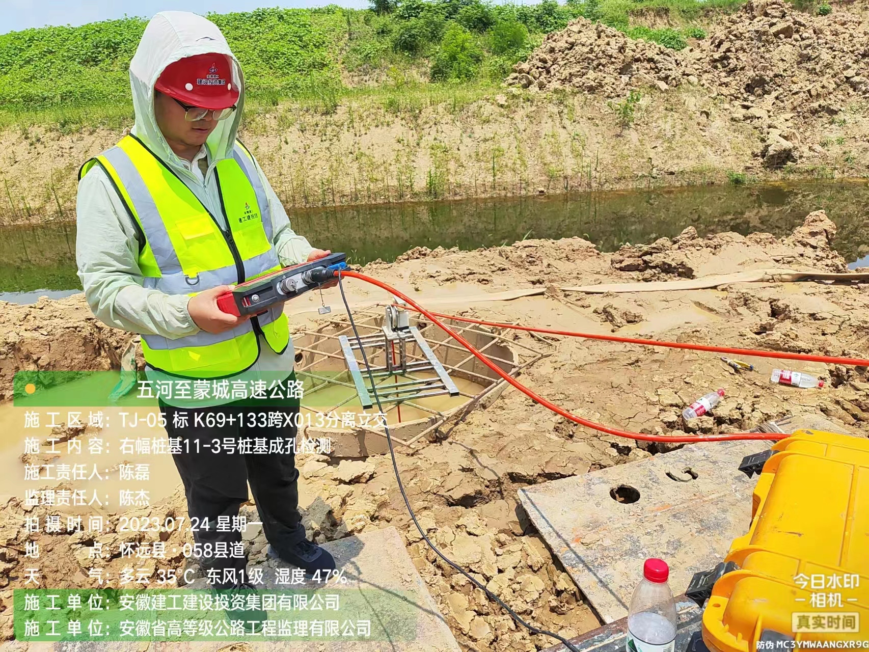 五河至蒙城高速公路項(xiàng)目檢測(cè)人員正在進(jìn)行成孔檢測(cè)