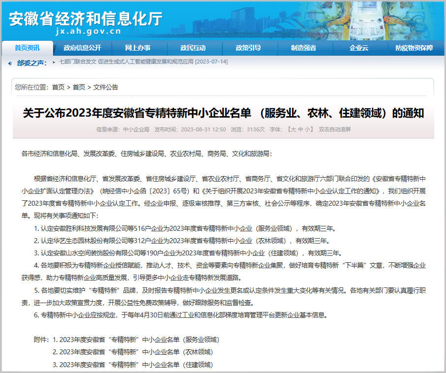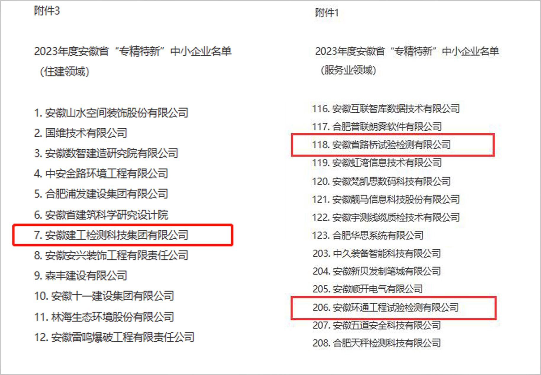 喜報!建工檢測及所屬兩家子公司榮獲2023年度安徽省 “專精特新”中小企業(yè)稱號