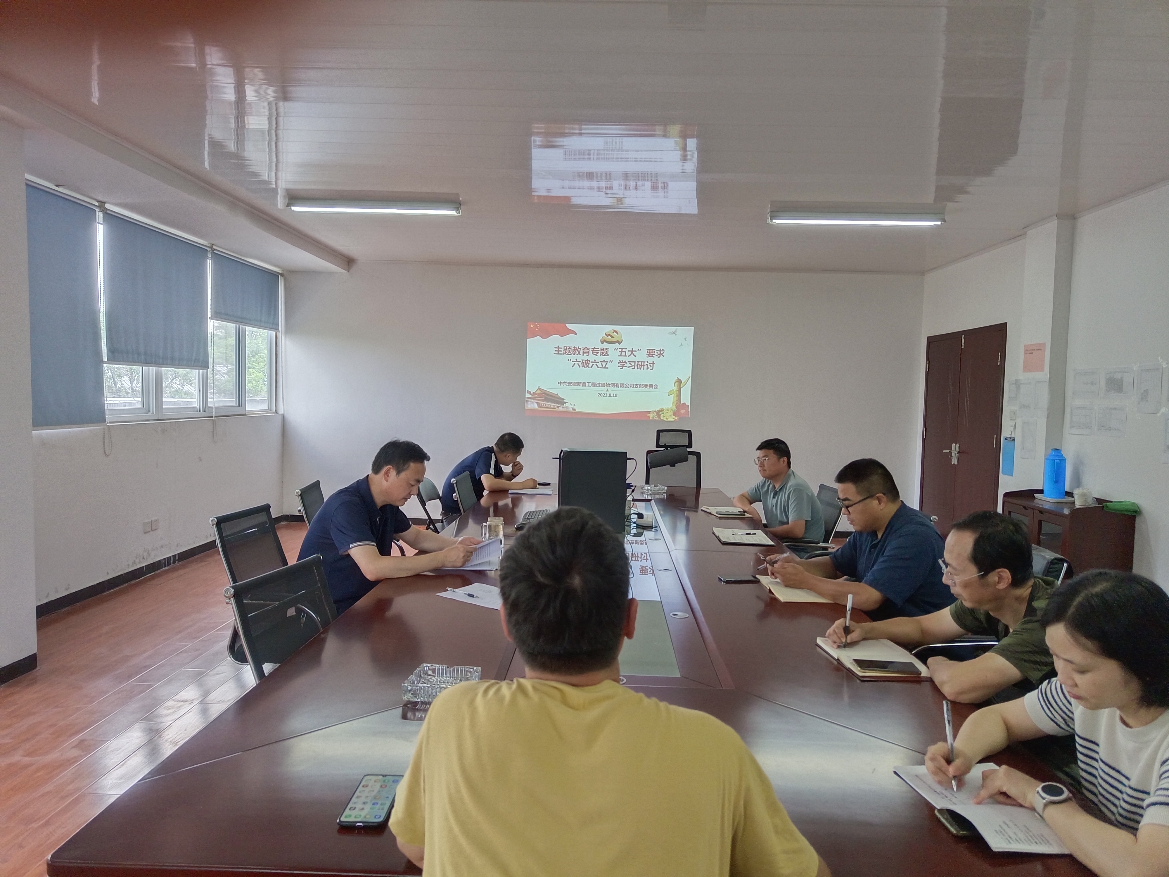 8月18日,中共安徽新鑫工程試驗檢測有限公司支部委員會召開(黨小組)會議,圍繞“五大”要求和“六破六立”開展大討論。會議強調:新鑫檢測和省內其他企業(yè)比還有一定的差距,只有破除小進即滿、小富即安的自滿觀念,才能取得更大的進步。要鼓勵青年職工比學趕超爭當專家,提升自己的專業(yè)能力,立足實際,強弱項、補短板,提升自己的專業(yè)及創(chuàng)新能力,以良好的專業(yè)能力服務項目一線,以過硬的檢測能力為公司做貢獻。新鑫檢測領導、部門負責人及關鍵崗位黨員代表聯系所學內容和工作實際,深入開展討論。堅持“五化五做”要求,勇于打破固化思維,著力在謀劃改革發(fā)展思路上下功夫。鼓勵黨員向先進對標、向優(yōu)秀看齊,主動作為、自我加壓,立足本職工作,樹牢責任意識,發(fā)揮黨員先鋒模范作用以實際行動助力集團和公司高質量發(fā)展。