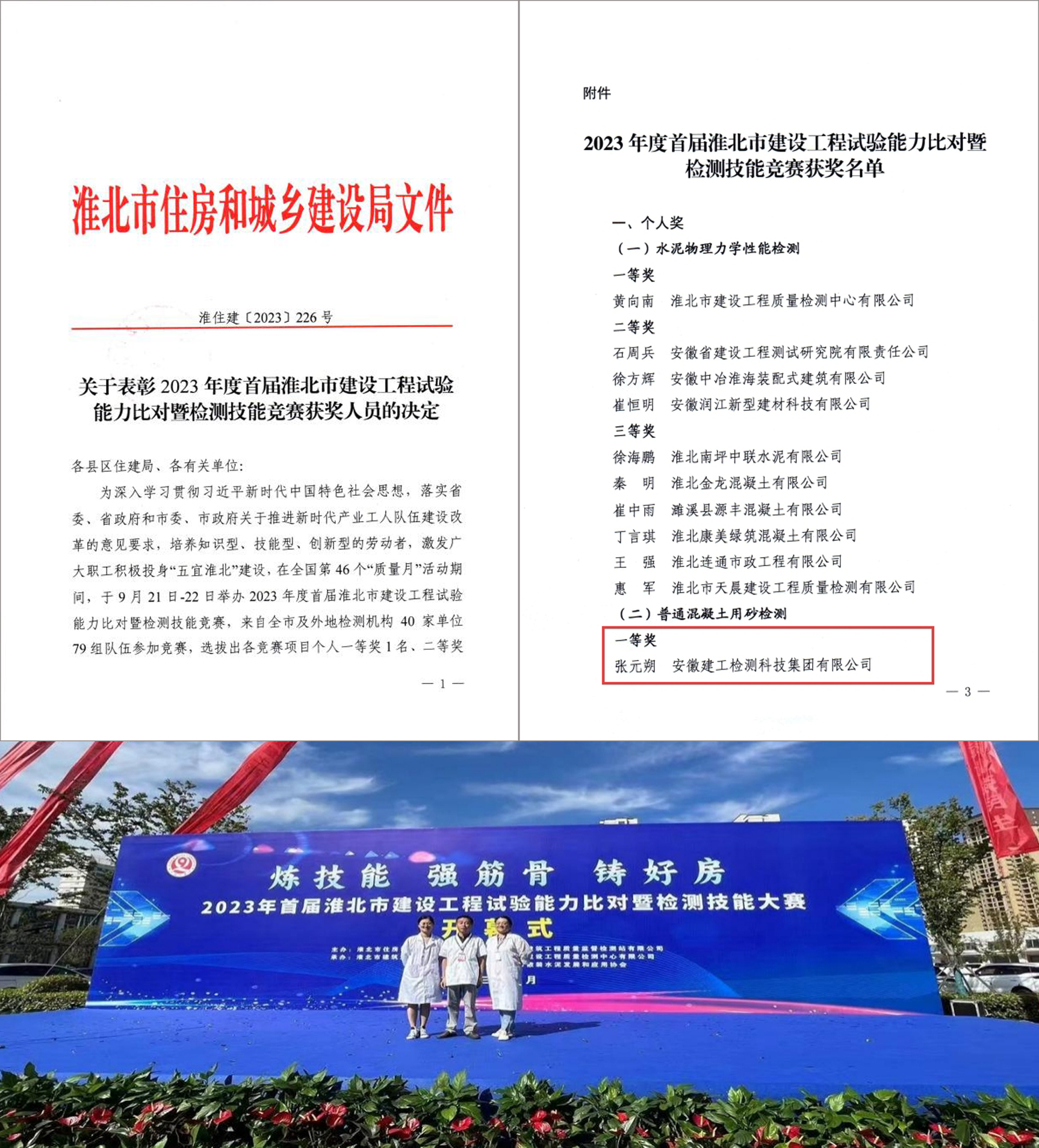 喜訊!建工檢測(cè)員工榮獲首屆淮北市建設(shè)工程試驗(yàn)?zāi)芰Ρ葘?duì)暨檢測(cè)技能競(jìng)賽個(gè)人一等獎(jiǎng)