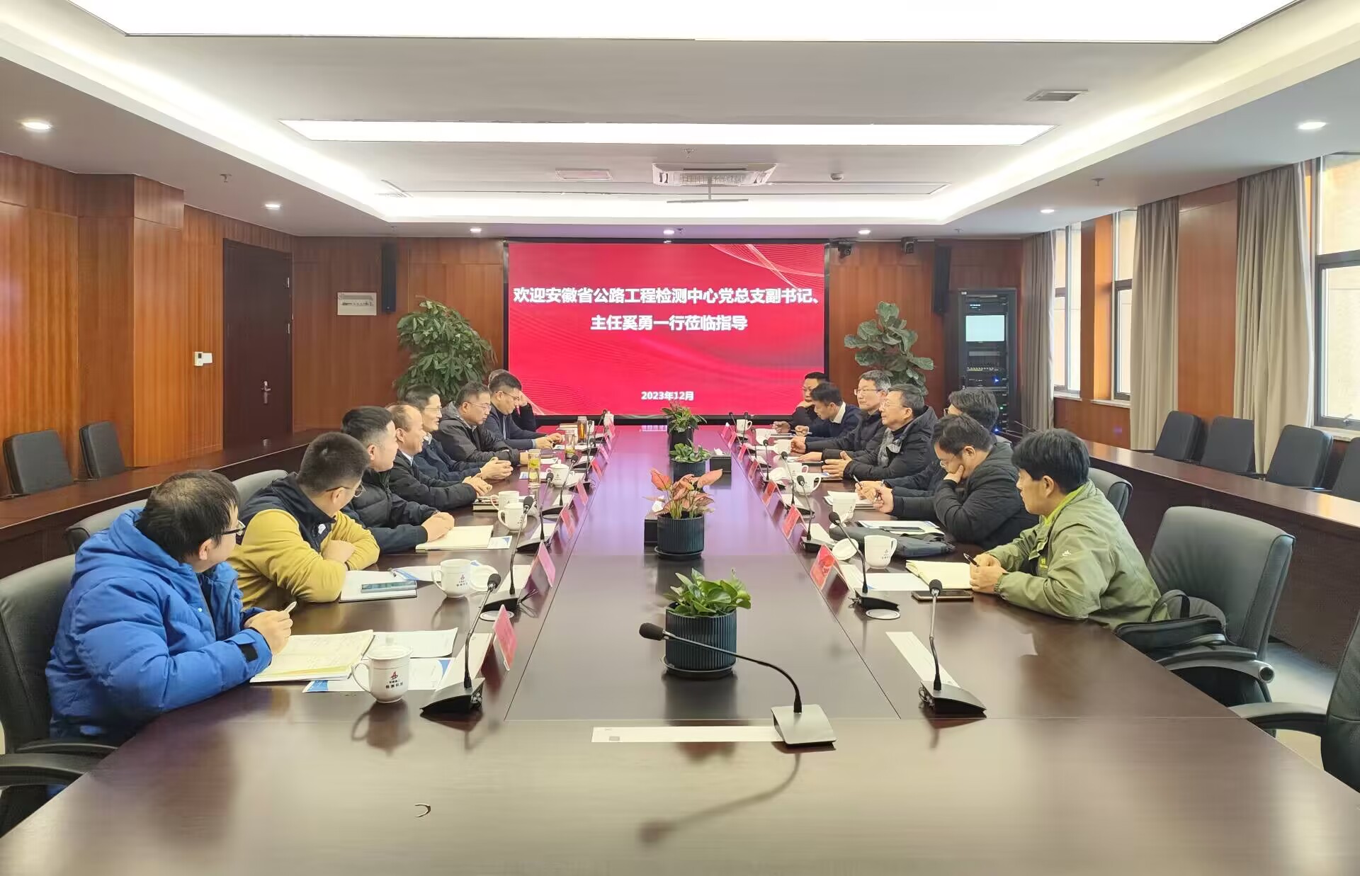 安徽省公路工程檢測中心黨總支副書記、主任奚勇一行到訪建工檢測座談?wù){(diào)研