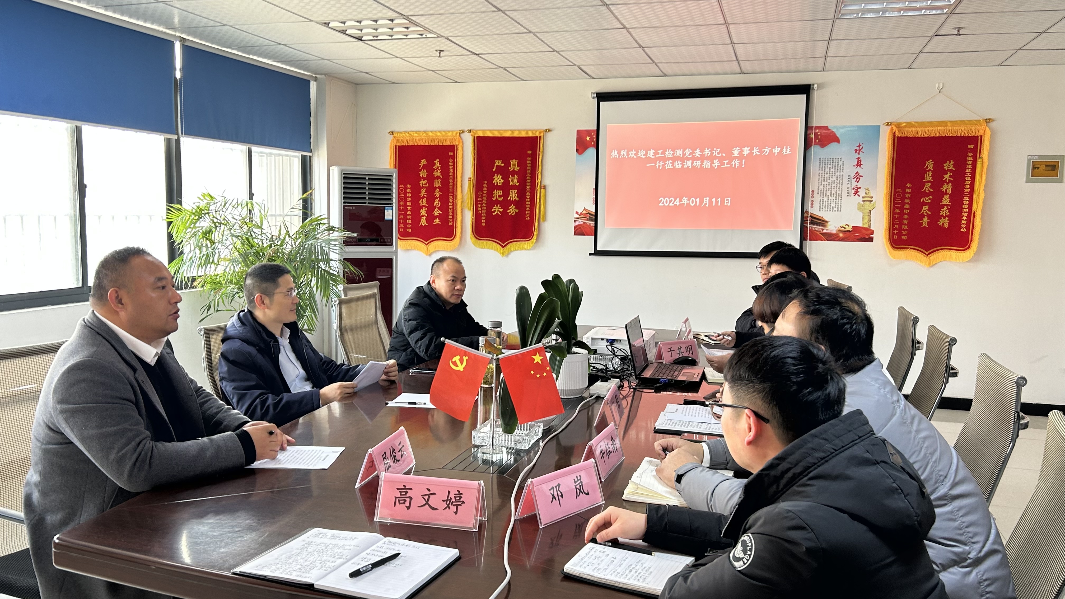 2024年1月11日上午,建工檢測(cè)黨委書記、董事長(zhǎng)方申柱一行赴建工檢測(cè)阜陽(yáng)分站調(diào)研指導(dǎo)工作。