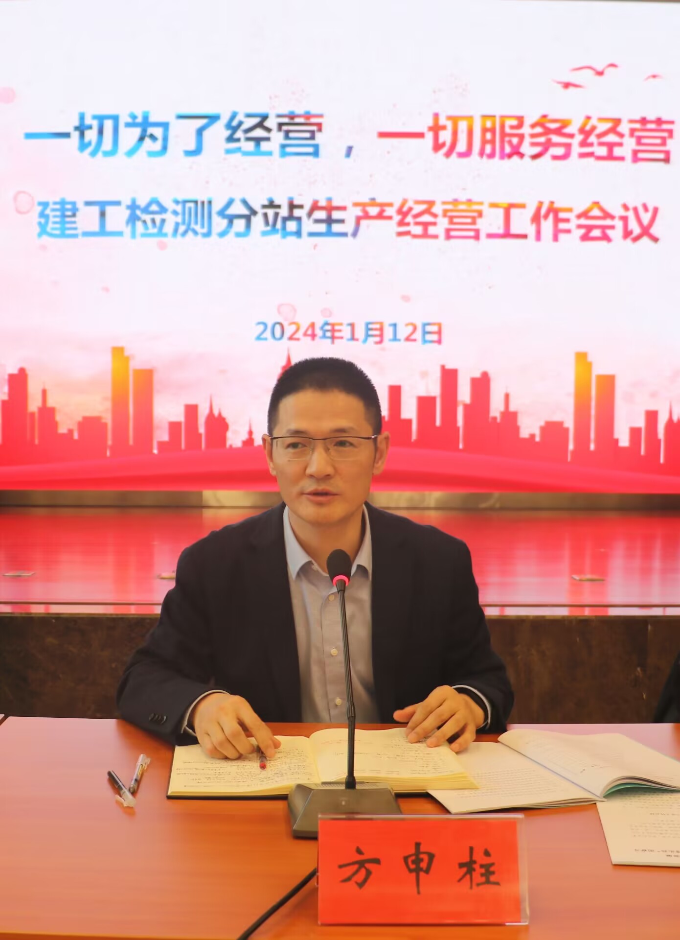 方申柱充分肯定了2023年各分站前期籌建、區(qū)域布局、經(jīng)營開拓等方面工作成績,并對2024年分站工作做出要求:一是要以時不我待的緊迫感大力開拓市場,緊抓機遇,搭乘住建部57號令的東風(fēng),做好品牌輸出、質(zhì)量管控和改革創(chuàng)新,全力以赴接訂單、搶市場;二是要以求真務(wù)實的責(zé)任感清晰分站定位,提升區(qū)域品牌影響力,拓展新領(lǐng)域,發(fā)展新業(yè)態(tài),進一步解放思想,推動創(chuàng)新發(fā)展;三是要以“馬上就干”的使命感完善內(nèi)部協(xié)同,強化團隊建設(shè),謀劃經(jīng)營“強激勵”措施,主動作為,迎難而上,為建工檢測爭當(dāng)“全國檢測企業(yè)排頭兵”貢獻力量。