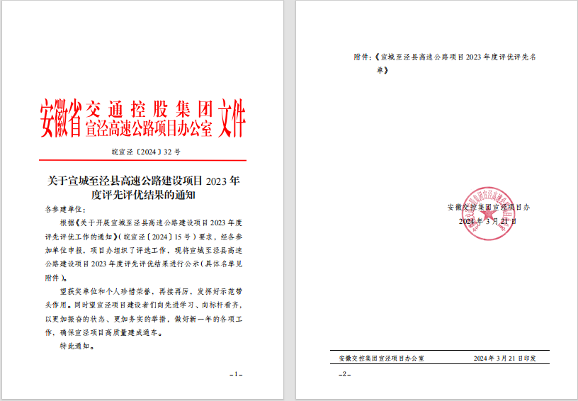 近日,從安徽交控集團宣城至涇縣高速公路建設(shè)項目辦公室傳來喜訊,路橋檢測公司宣涇高速一期工程中心試驗室榮獲2023年度該建設(shè)項目優(yōu)秀試驗檢測單位及優(yōu)秀試驗檢測人員稱號。