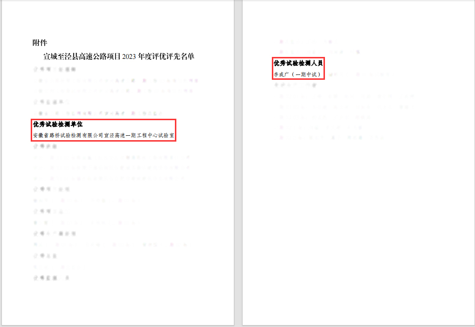 喜訊!路橋檢測公司宣城至涇縣高速公路中心試驗室受到業(yè)主表彰