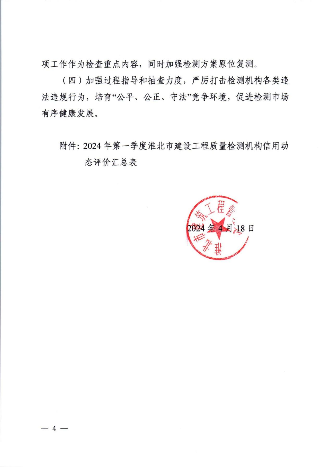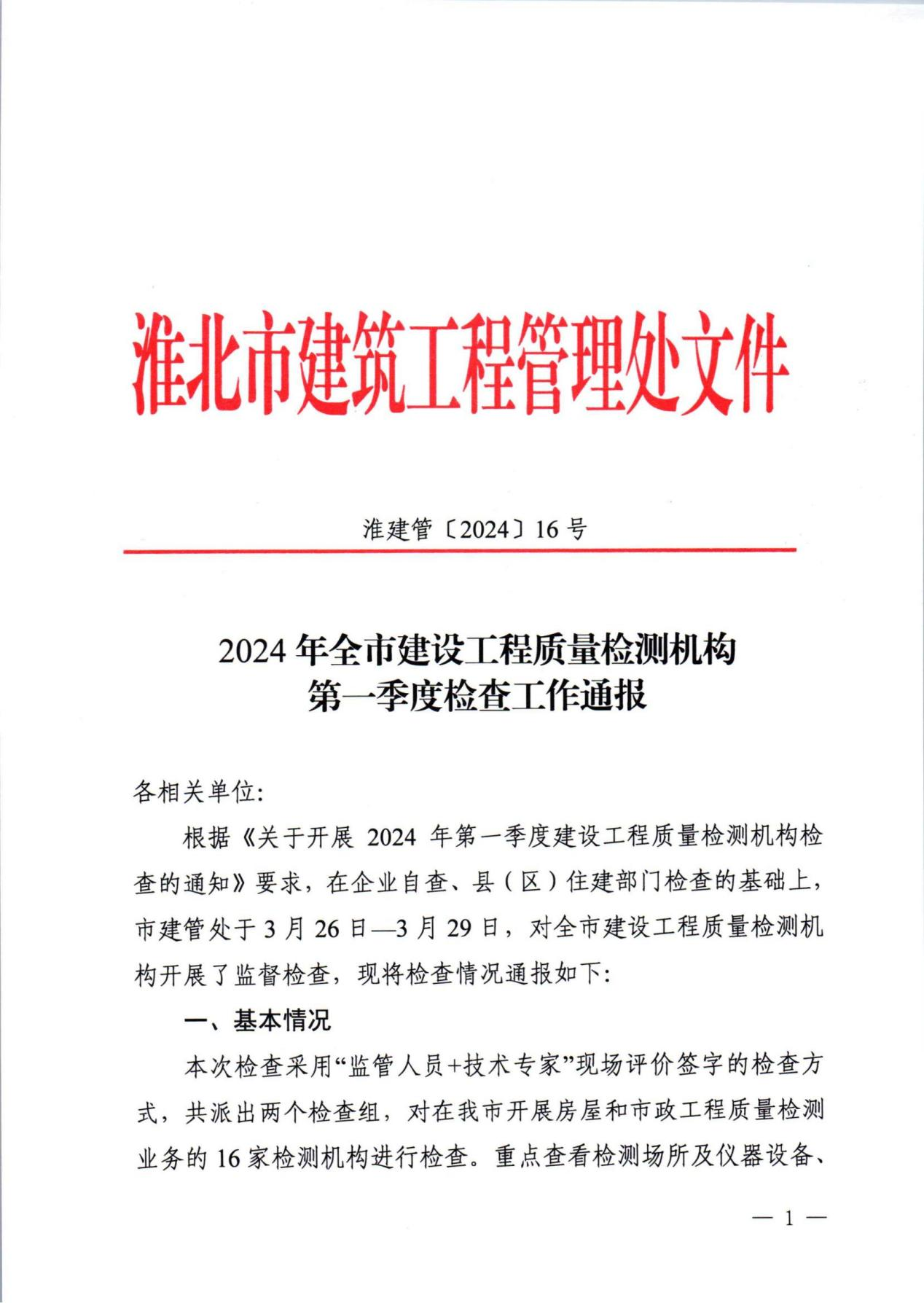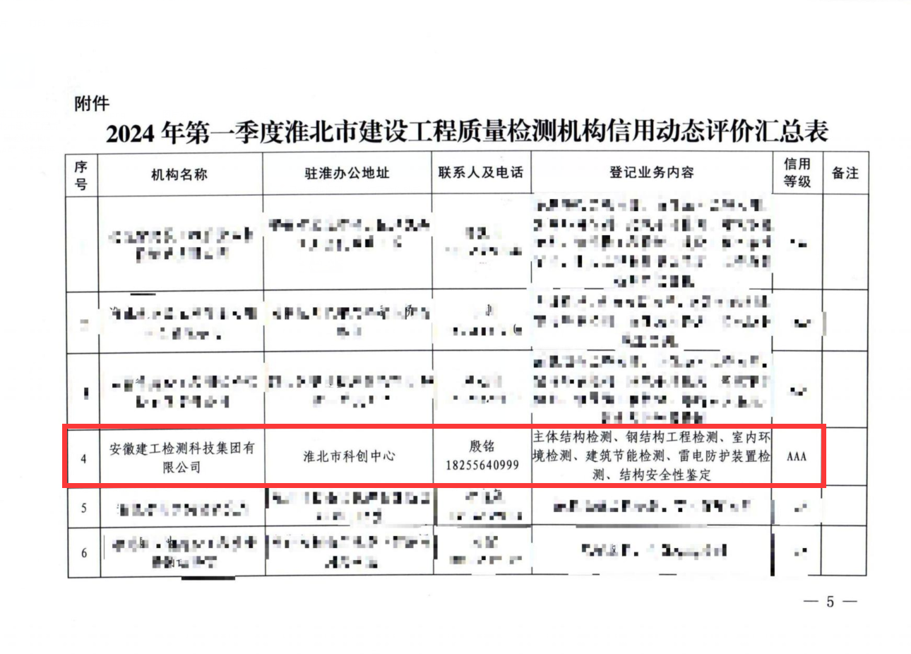 4月18日,淮北市住建局建設(shè)工程管理處公布了淮北市建設(shè)工程質(zhì)量檢測機(jī)構(gòu)第一季度監(jiān)督檢查結(jié)果,安徽建工檢測科技集團(tuán)獲得“AAA”級(最高等級)信用評價(jià),這說明建工檢測在淮北的技術(shù)力量和檢測成績得到了主管部門高度的肯定和認(rèn)可。