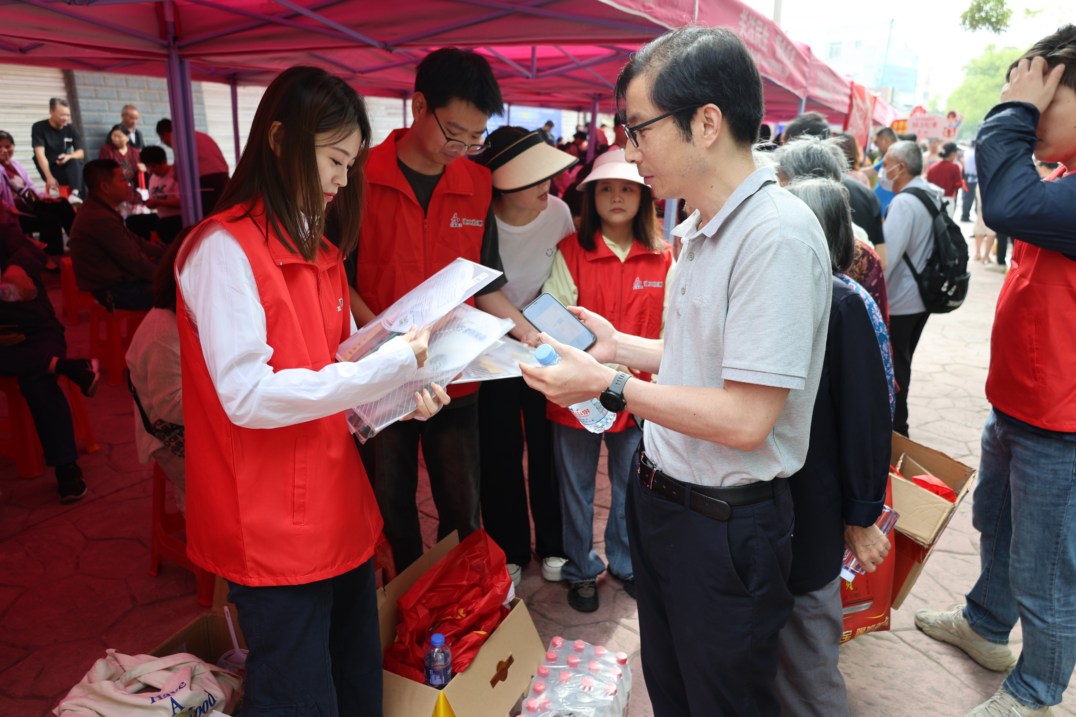 6月7日上午7時許,志愿者團隊早早來到考點附近,與街道社區(qū)工作人員一起布置志愿服務(wù)點、安放指示標(biāo)語牌,為考生們維持良好的考場周邊秩序,提供暖心周到的服務(wù)?;顒蝇F(xiàn)場,青年志愿者們主動詢問,貼心詢問,為有需要的考生提供應(yīng)急文具包,對在外等待的家長提供搖扇及礦泉水等物資,并做好相關(guān)區(qū)域的指引服務(wù),受到了附近考生家長的一致好評。