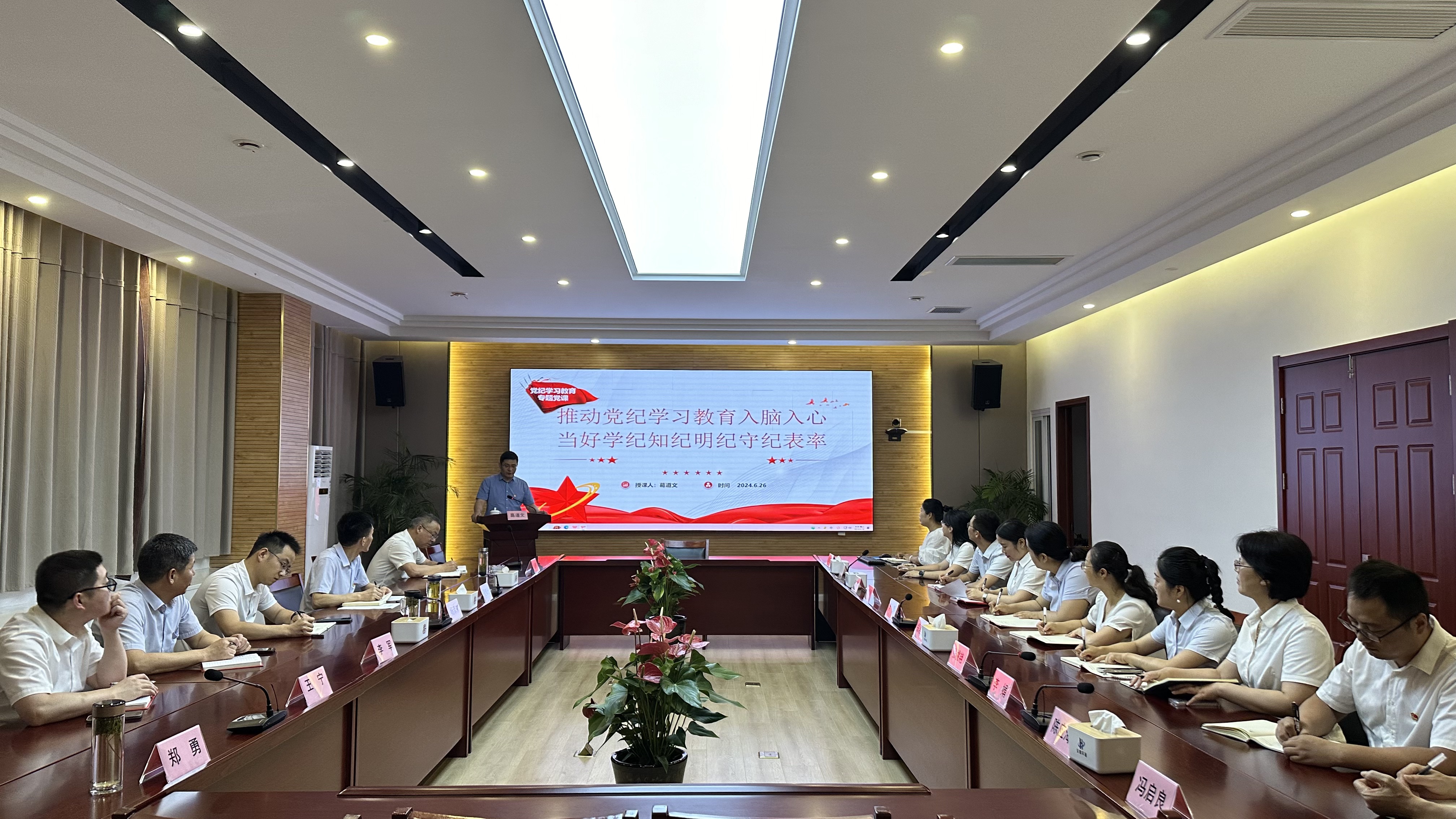 葛道文以《推動(dòng)黨紀(jì)學(xué)習(xí)教育入腦入心 當(dāng)好學(xué)紀(jì)知紀(jì)明紀(jì)守紀(jì)表率》為題,從“深入學(xué)習(xí)領(lǐng)悟習(xí)近平總書記關(guān)于加強(qiáng)黨的紀(jì)律教育的重要論述”“準(zhǔn)確把握新時(shí)代加強(qiáng)黨的紀(jì)律教育的重要經(jīng)驗(yàn)”“堅(jiān)決貫徹落實(shí)黨紀(jì)學(xué)習(xí)教育各項(xiàng)部署任務(wù)”三個(gè)維度講授,結(jié)合史實(shí)、立足當(dāng)下、放眼未來,闡述了加強(qiáng)黨的紀(jì)律建設(shè)的重要意義,提出加強(qiáng)黨的紀(jì)律建設(shè)的具體要求,勉勵(lì)環(huán)通公司全體黨員干部進(jìn)一步強(qiáng)化紀(jì)律意識(shí)、加強(qiáng)自我約束、提高免疫能力,增強(qiáng)政治定力、紀(jì)律定力、道德定力、抵腐定力,始終做到忠誠(chéng)干凈擔(dān)當(dāng)。