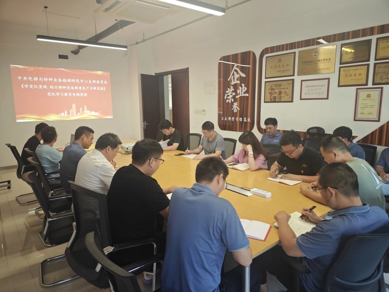 為認真學習貫徹《中國共產黨紀律處分條例》,推動黨紀學習教育深入一線,按照集團黨委統(tǒng)一部署,7月5日,特檢中心黨支部書記、中心主任楊昊同志結合中心工作講授《學黨紀黨規(guī) 助力特種設備新質生產力新發(fā)展》黨紀學習教育專題黨課,特檢中心班子成員、全體黨員、入黨積極分子、部分在崗電梯檢驗人員參加學習。