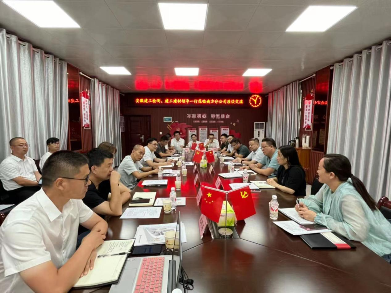 ▲與安徽水利南方公司黨總支副書記、總經(jīng)理李讓春,耒陽市城農(nóng)投集團(tuán)黨委副書記、總經(jīng)理謝小明,耒陽市建設(shè)工程質(zhì)量安全監(jiān)督站負(fù)責(zé)人陸豪敏座談