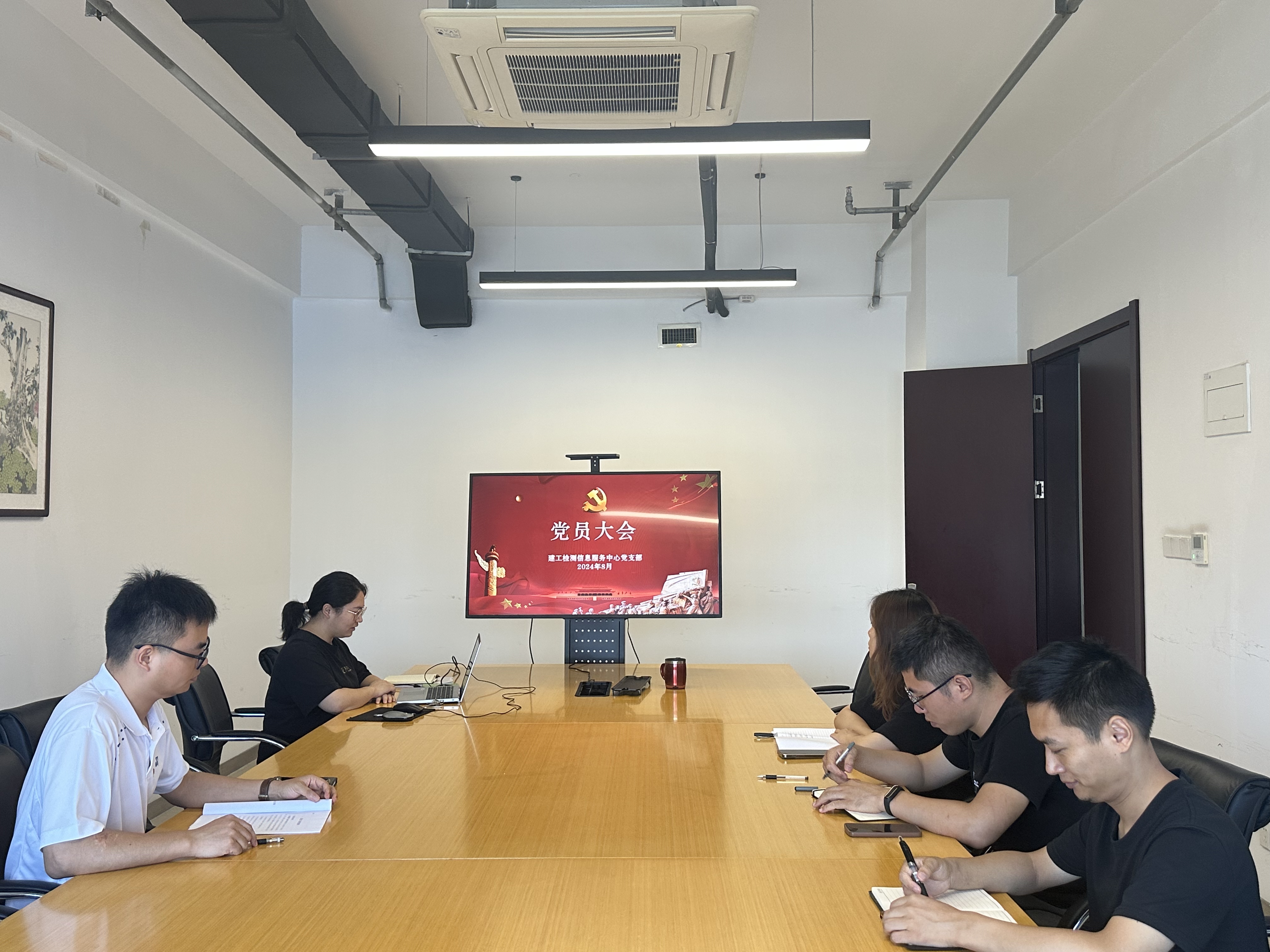 近日,綠色低碳與建筑幕墻中心黨支部在檢測大廈5樓召開支部黨員大會,參加學(xué)習(xí)的黨員干部職工共24人,與會人員重點圍繞《中共中央關(guān)于進(jìn)一步全面深化改革 推進(jìn)中國式現(xiàn)代化的決定》等內(nèi)容進(jìn)行學(xué)習(xí)討論。學(xué)習(xí)結(jié)束后,大家紛紛表示,作為新時代的國企黨員干部職工,我們將深入學(xué)習(xí)貫徹黨的二十屆三中全會精神,守正創(chuàng)新,踔厲奮發(fā),勤勉履職,切實將學(xué)習(xí)成果轉(zhuǎn)化為推動工作的動力,努力以更專業(yè)高效的建筑工程檢測服務(wù)助力中國式現(xiàn)代化建設(shè)。