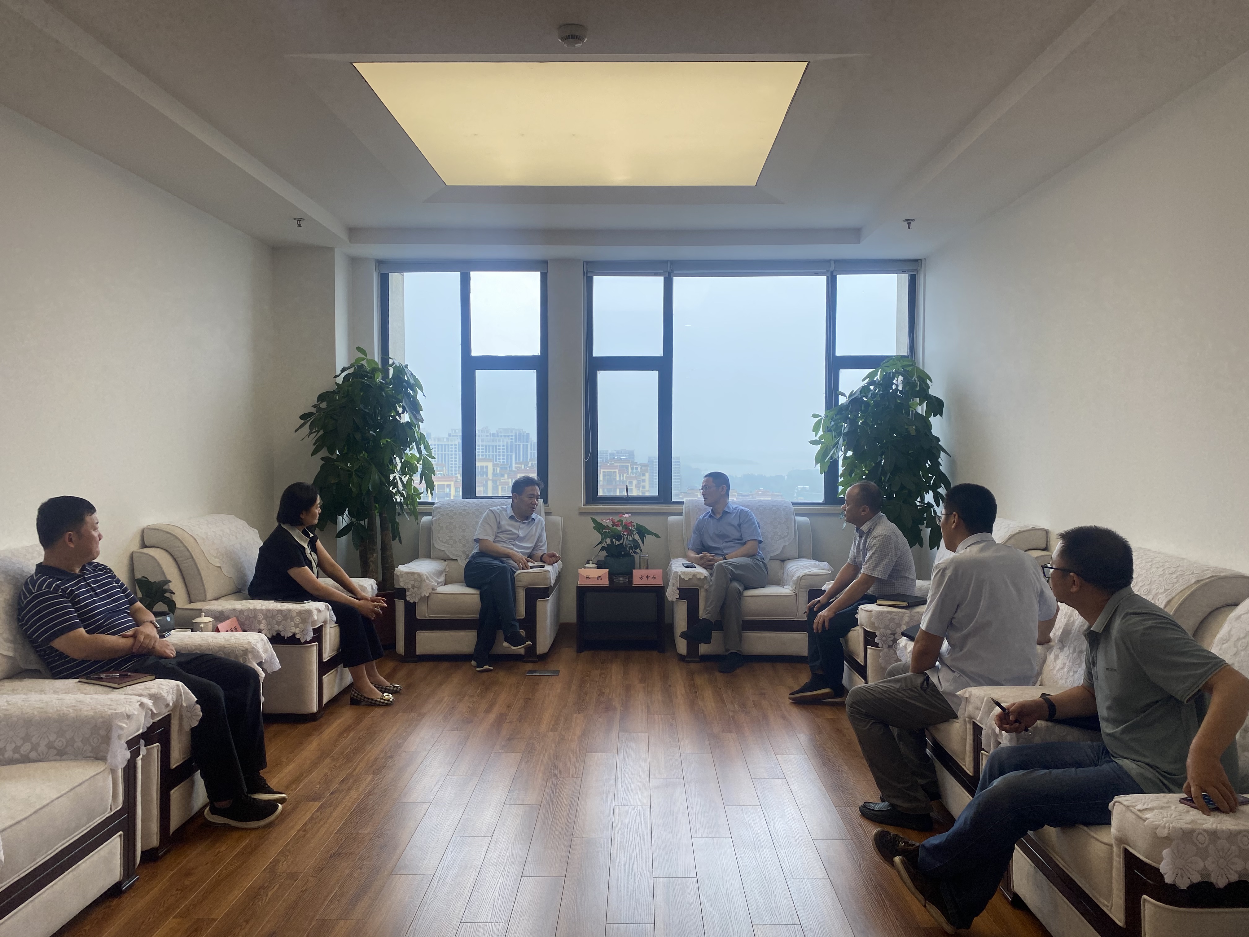 9月6日上午,蜀山經(jīng)開區(qū)管委會黨工委副書記張凱一行到訪,建工檢測黨委書記、董事長方申柱接待并舉行會談。