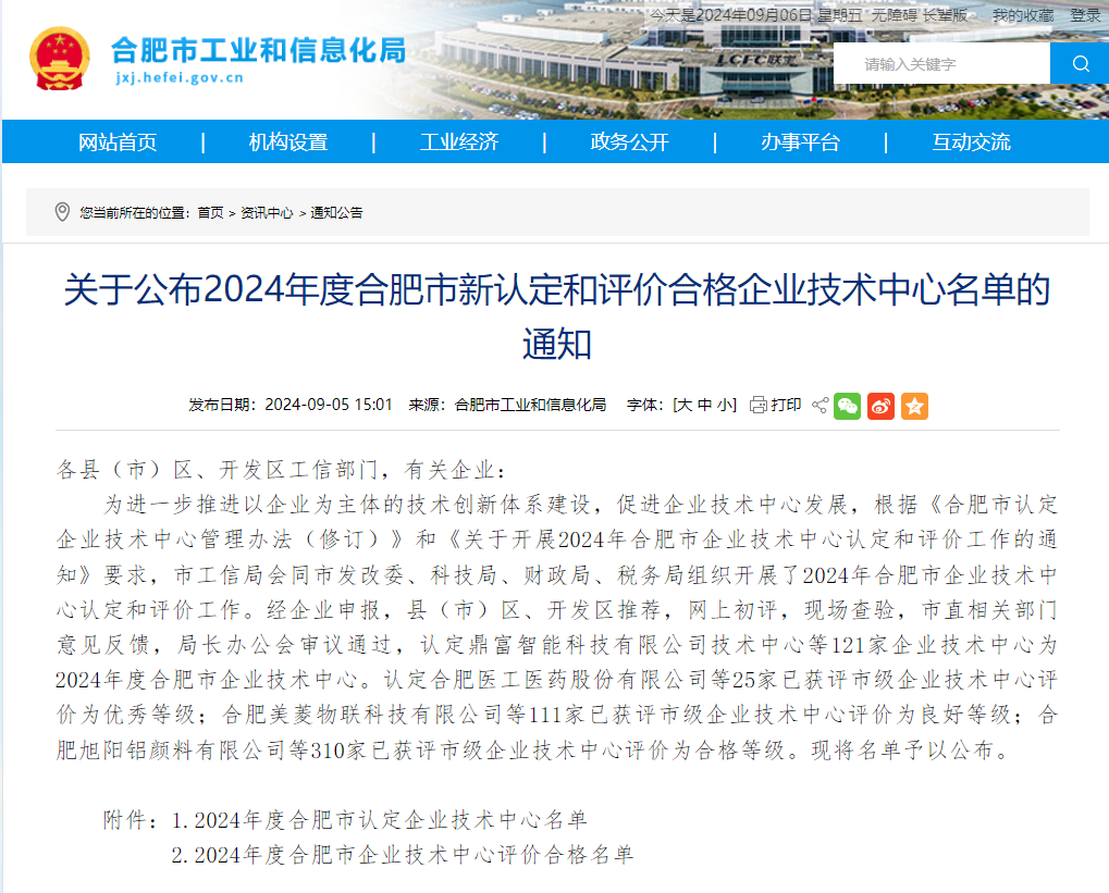 喜報!建工檢測環(huán)通公司技術中心被認定為2024年度合肥市企業(yè)技術中心