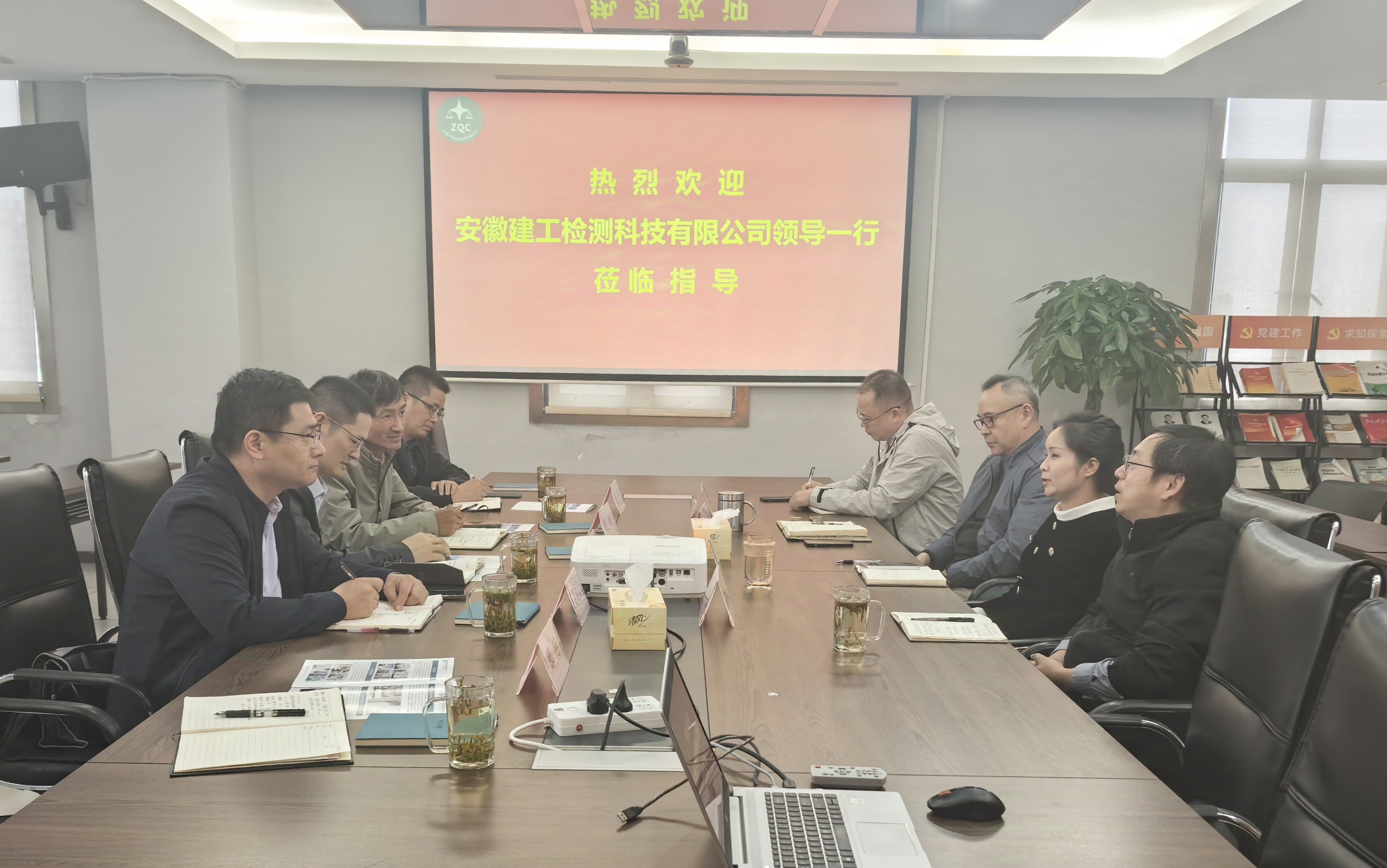 安徽中青公司領(lǐng)導(dǎo)陳戈、宋誠(chéng)云,建工檢測(cè)領(lǐng)導(dǎo)趙峰、葛道文,雙方相關(guān)部門負(fù)責(zé)同志參加此次調(diào)研活動(dòng)。