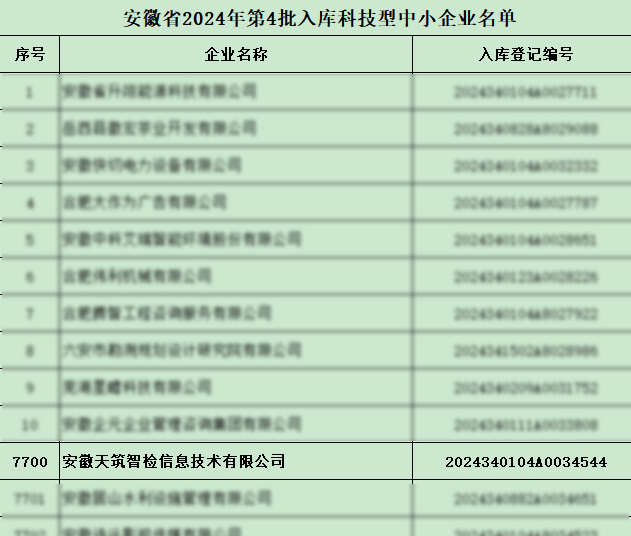 喜報!建工檢測所屬單位天筑智檢公司成功入庫“安徽省2024年科技型中小企業(yè)”