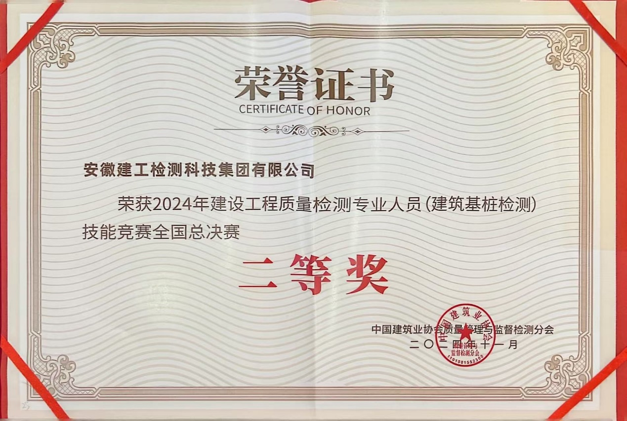 近日,在湖北武漢舉辦的2024年建設(shè)工程質(zhì)量檢測(cè)專業(yè)人員(建筑基樁檢測(cè))技能競(jìng)賽全國總決賽上,建工檢測(cè)代表隊(duì)勇奪二等獎(jiǎng)。