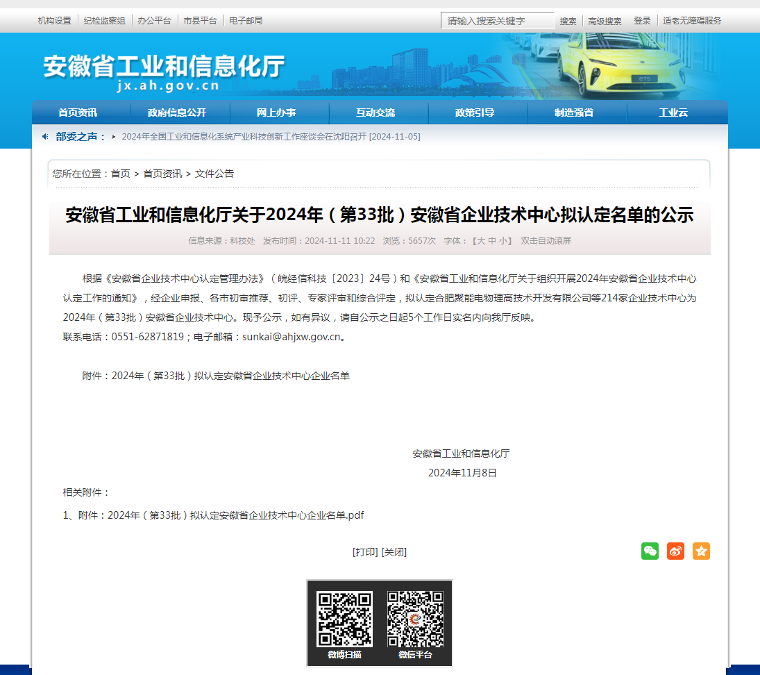 近日,安徽省工信廳對2024年(第33批)安徽省企業(yè)技術(shù)中心擬認(rèn)定名單進行公示,經(jīng)企業(yè)申報、各市初審?fù)扑]、初評、專家評審和綜合評定等程序,建工檢測所屬子公司安徽省路橋試驗檢測有限公司成功入選。