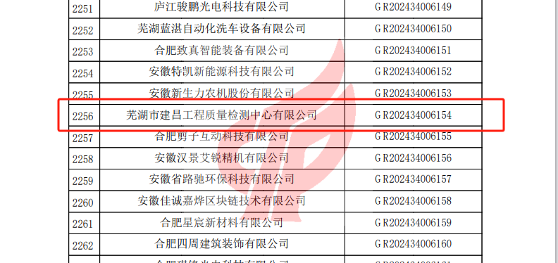 近日,全國高新技術企業(yè)認定管理工作領導小組辦公室發(fā)布《對安徽省認定機構2024年認定報備的第二批高新技術企業(yè)進行備案的公告》,建昌檢測順利通過2024年“高新技術企業(yè)”認定,成為建工檢測本部及所屬單位在內(nèi)的第6家高新技術企業(yè)。