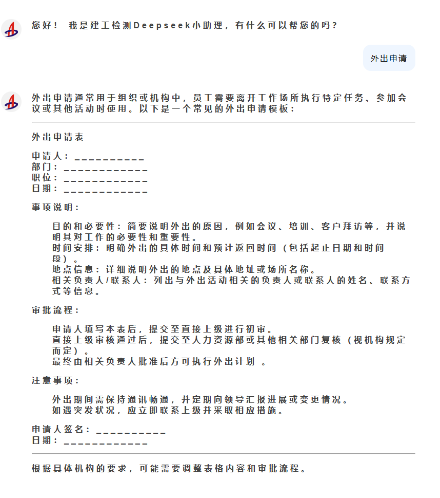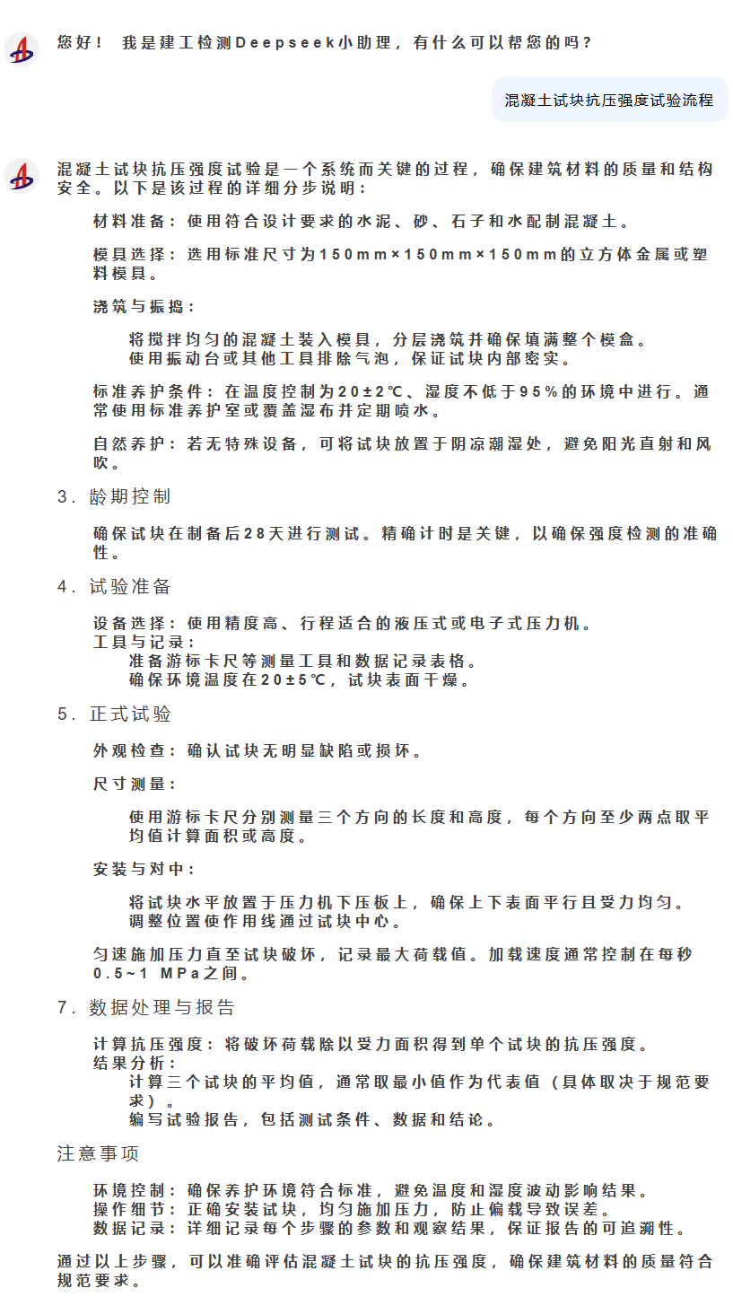 本次測試主要涵蓋了Deepseek的規(guī)章制度問答咨詢等通用領(lǐng)域應(yīng)用,實現(xiàn)了Deepseek在檢驗檢測特定行業(yè)業(yè)務(wù)場景的應(yīng)用。未來,建工檢測將持續(xù)探索Deepseek等大模型技術(shù)在檢驗檢測行業(yè)智能導(dǎo)辦、智能數(shù)據(jù)分析、智能文檔管理等應(yīng)用場景,以技術(shù)支撐、科技賦能、創(chuàng)新驅(qū)動助力公司高質(zhì)量發(fā)展。