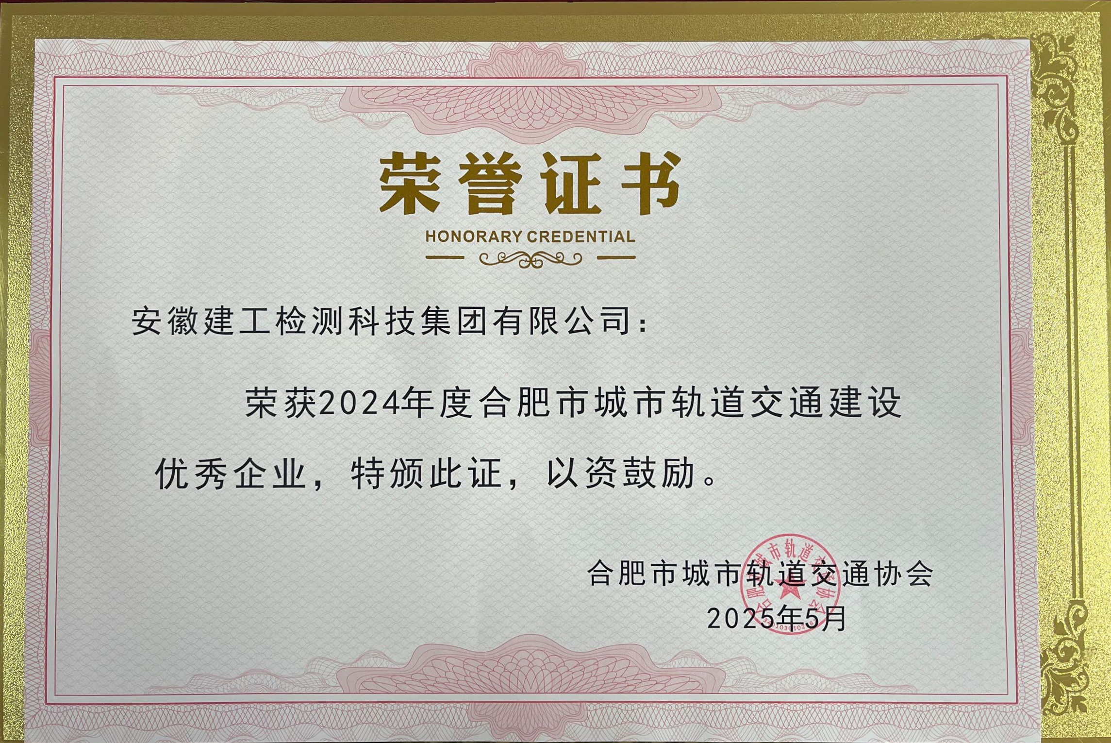 喜報(bào)!建工檢測(cè)公司榮獲“2024年度合肥市軌道交通建設(shè)優(yōu)秀企業(yè)”