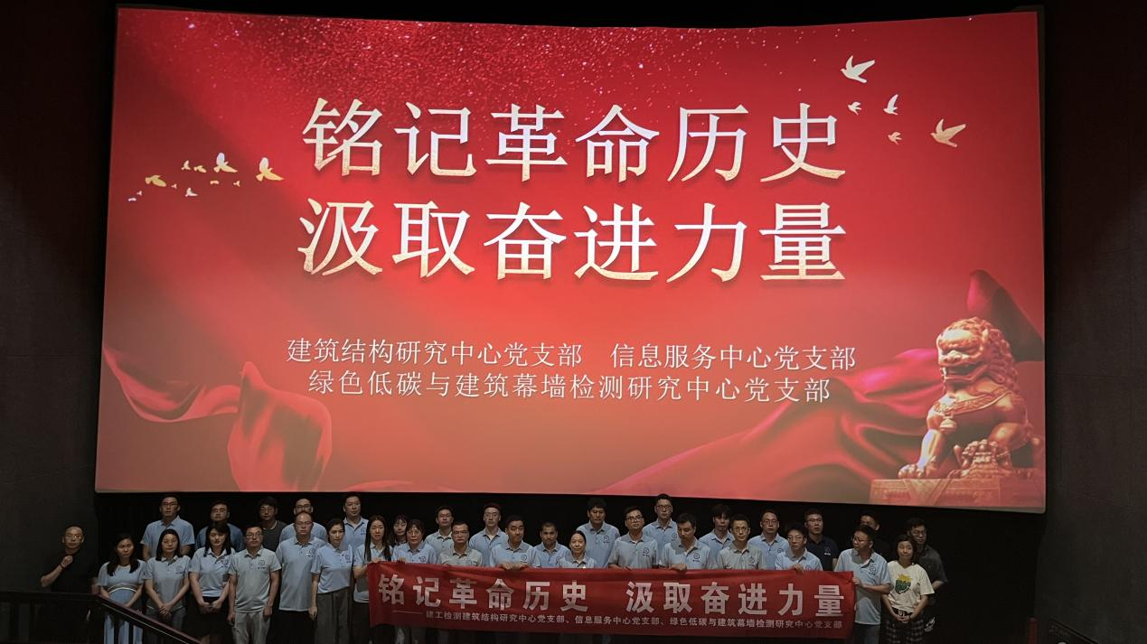 8月29日,公司所屬信息服務中心黨支部、建筑結(jié)構(gòu)研究中心黨支部、綠色低碳與建筑幕墻檢測研究中心黨支部聯(lián)合開展“銘記革命歷史 汲取奮進力量”主題黨日活動,共同觀看愛國主義電影《南京照相館》。