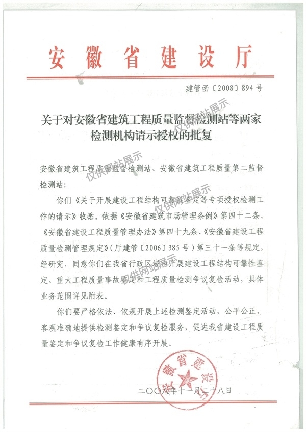 “可靠性鑒定、重大工程質(zhì)量事故鑒定、工程質(zhì)量檢測爭議復(fù)檢”專項(xiàng)授權(quán)
