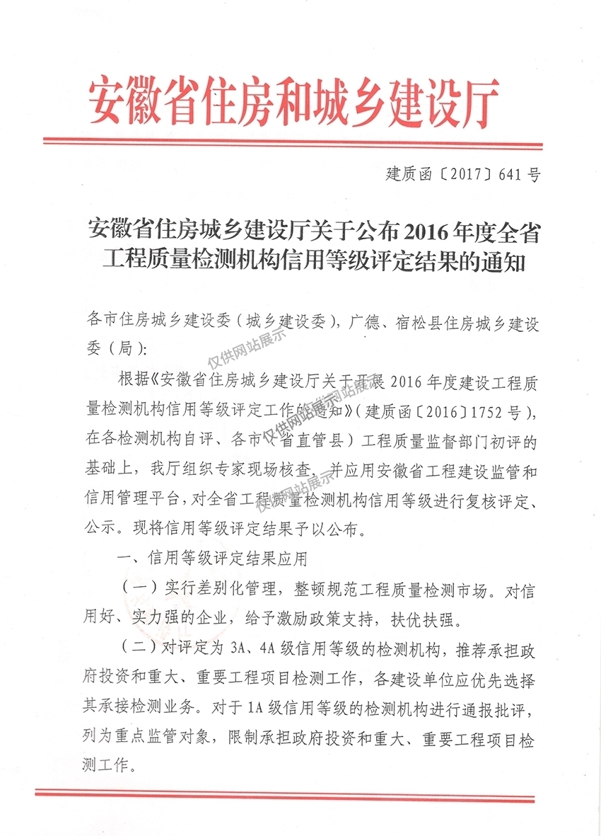 工程質(zhì)量檢測機(jī)構(gòu)信用等級評定4A