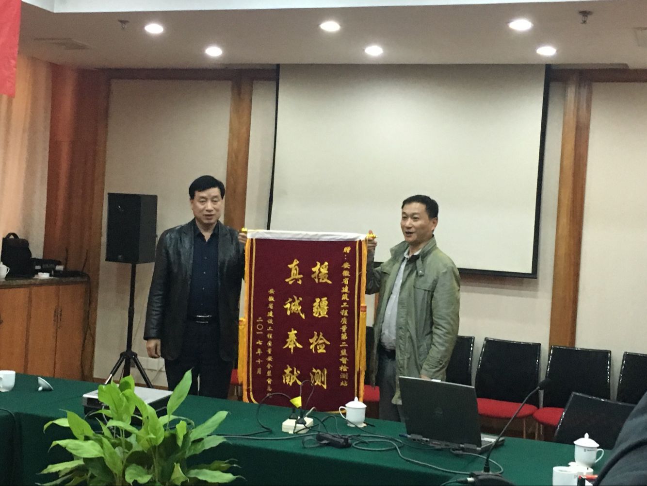10月21日,省住建廳綜合計(jì)劃處處長(zhǎng)尹宗軍、省質(zhì)安監(jiān)督總站站長(zhǎng)程德旺在良苑酒店五樓安徽廳親切看望和慰問(wèn)援疆工作組成員,程總長(zhǎng)代表質(zhì)安監(jiān)督總站向援疆工作組授予錦旗和贈(zèng)送慰問(wèn)品。