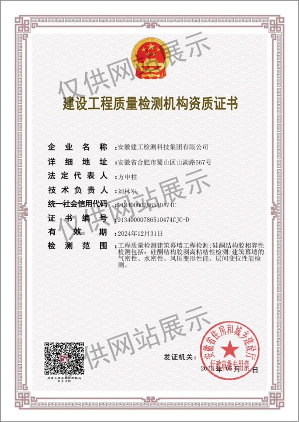 建設(shè)工程質(zhì)量檢測(cè)機(jī)構(gòu)資質(zhì)證書(shū)(建筑幕墻)