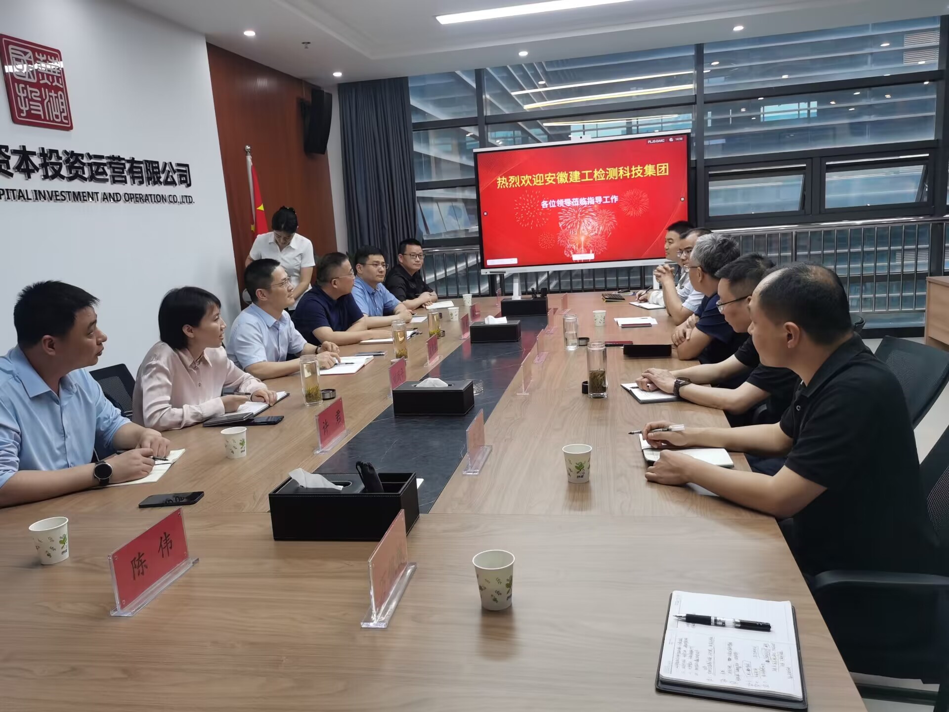 蕪湖市國有資本投資運營有限公司總經(jīng)理方曉及有關(guān)負責(zé)同志,安徽建工集團市場開發(fā)與投資部劉鳳平,檢測科技集團領(lǐng)導(dǎo)郭楊及有關(guān)部門負責(zé)同志參加座談。