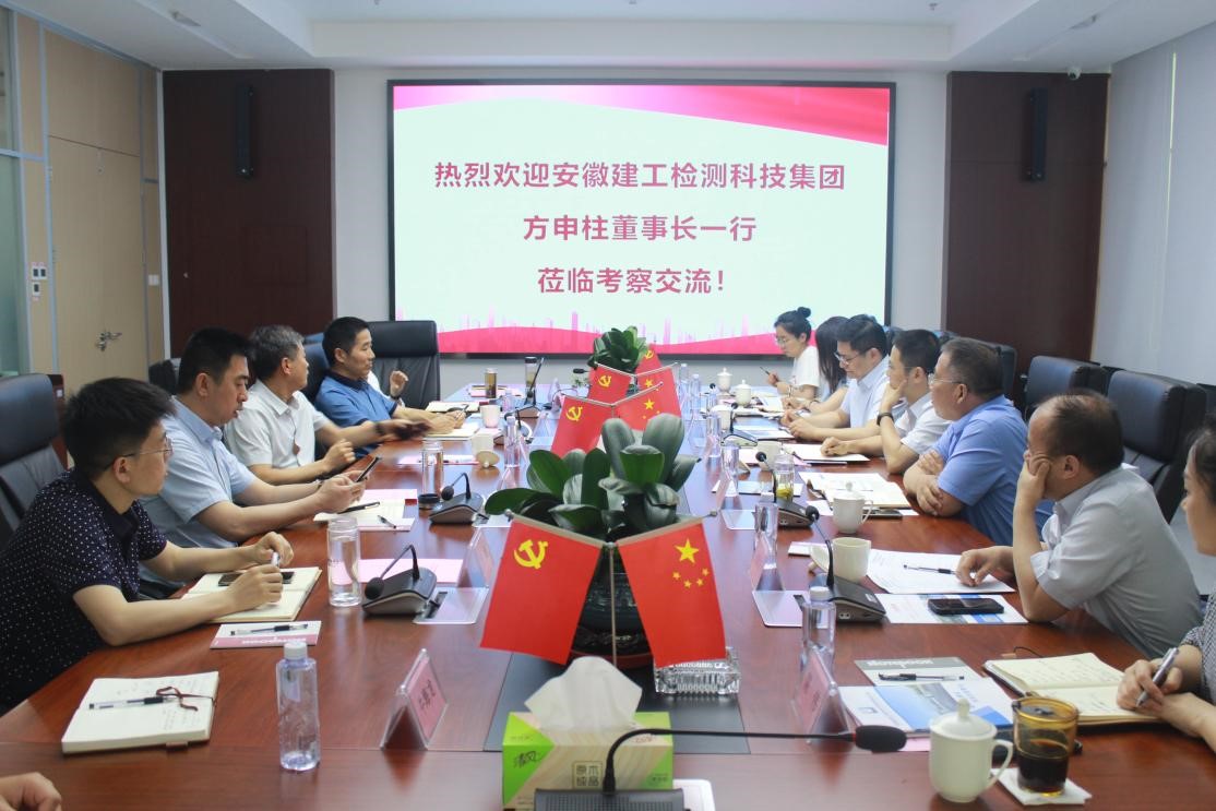 6月8日,安建檢測黨委書記、董事長方申柱率隊赴安徽省城建設(shè)計研究總院股份有限公司交流學習,安徽省城建設(shè)計研究總院股份有限公司黨委書記、董事長孟玉熱情接待并召開座談會。